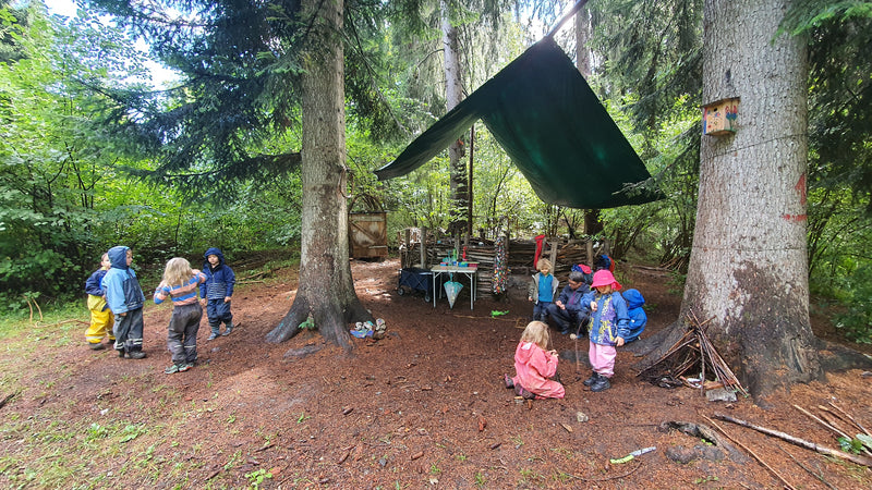 - Wegen fehlender Fertigelemente im Wald wird die Kreativität und Phantasie bei den Aktivitäten gefördert, und die Vielfältigkeit, Veränderbarkeit und Komplexität des Ökosystems Wald regt die Motivation zur Eigentätigkeit an.