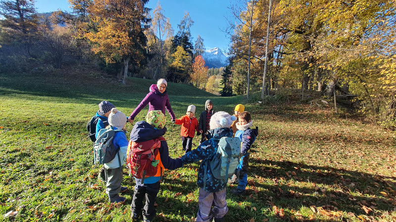 Wir sind im Wald, auf dem Pferdehof oder im Naturpark Beverin unterwegs und zusätzlich im Kunst- und Bastelatelier am Heinzenberg.